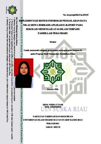 ABSTRAK Erna Widia Utami, (2025) Implementasi Sistem Informasi Pengolahan Data Nilai Siswa Berbasis Aplikasi E-Raport Pada Sekolah Menengah Atas Islam Terpadu Fadhillah Pekanbaru. Penelitian ini mengkaji tentang Implementasi Sistem Informasi Pengolahan Data Nilai Siswa Berbasis Aplikasi E-Raport Pada Sekolah Menengah Atas Islam Terpadu Fadhillah Pekanbaru. Tujuan dalam penelitian ini adalah untuk: Pertama, Menganalisis implementasi sistem informasi pengolahan data nilai siswa berbasis aplikasi E-Raport di SMA IT Fadhillah Pekanbaru. Kedua, mengidentifikasi kendala dalam penerapan aplikasi E-Raport di SMA IT Fadhillah Pekanbaru. Informan utama penelitian ini adalah Waka Kurikulum, sedangkan informan pendukungnya adalah guru kelas di SMA IT Fadhillah Pekanbaru. Teknik pengumpulan data yang digunakan adalah, wawancara, observasi, dan dokumentasi. Kemudian data penelitian ini dianalisis melalui reduksi data, display data,dan kesimpulan/ verifikasi data. Hasil penelitian menunjukkan Implementasi Sistem Informasi Pengolahan Data Nilai Siswa Berbasis aplikasi E-Raport meningkatkan efisiensi dan akurasi pengolahan nilai siswa. Kendala yang dihadapi dalam penerapan E-Raport seperti keterbatasan jumlah operator, kesalahan input, dan masalah teknis (perangkat dan jaringan internet). Kata Kunci: Implementasi, Sistem Informasi, Pengolahan Data nilai, E raport