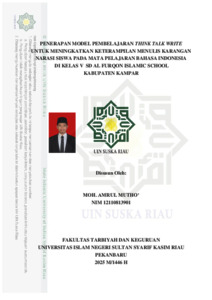 MOH. AMRUL MUTHO’, - (2025) Penerapan Model Pembelajaran Think Talk Write untuk Meningkatkan Keterampilan Menulis karangan narasi Siswa pada Muatan Pelajaran Bahasa Indonesia Kelas V di SD Al Furqon Islamic School Kabupaten Kampar. Skripsi thesis, UNIVERSITAS ISLAM NEGERI SULTAN SYARIF KASIM RIAU.