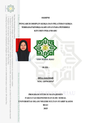 DINA SALIMAH, - (2025) PENGARUH DISIPLIN KERJA DAN PELATIHAN KERJA TERHADAPKINERJA KARYAWAN PADAPETERSELI KITCHEN PEKANBARU. Skripsi thesis, Universitas Islam Negeri Sultan Syarif Kasim Riau.