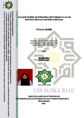 ROSMAIDA, - (2025) ANALISIS MODEL MATEMATIKA PENYEBARAN CACAR MONYET DENGAN FAKTOR VAKSINASI. Skripsi thesis, UNIVERSITAS ISLAM NEGERI SULTAN SYARIF KASIM RIAU.