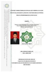 Abi Achmad Fadillah, - (2025) Analisis Yuridis Terhadap Donasi Akun Bermuatan Judi Online Dalam Siaran Langsung Youtube Sebagai Tindak Pidana Pendistribusian Judi Online. Skripsi thesis, UNIVERSITAS ISLAM NEGERI SULTAN SYARIF KASIM RIAU.