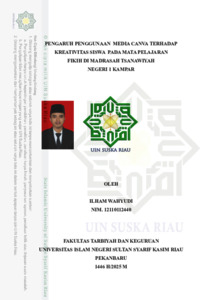 ABSTRAK Ilham Wahyudi, (2025): Pengaruh Penggunaan Media Canva terhadap Kreativitas Siswa pada Mata Pelajaran Fikih di Madrasah Tsanawiyah Negeri 1 Kampar Penelitian ini bertujuan untuk menguji pengaruh penggunaan media canva terhadap kreativitas siswa pada mata pelajaran Fikih di Madrasah Tsanawiyah Negeri 1 Kampar. Jenis penelitian yang digunakan adalah eksperimen semu atau quasi experiment. Populasi dalam penelitian ini adalah 202 siswa Madrasah Tsanawiyah Negeri 1 Kampar dan pengambilan sampel menggunakan Purposive sampling yang berjumlah 60 orang yang terdiri dari 30 orang kelas eksperimen dan 30 orang kelas kontrol. Pengumpulan data menggunakan observasi, angket, dan dokumentasi. Teknik analisis data meggunakan Uji t ( t-test ). Hasil analisis statistik dengan menggunakan Uji t diperolah nilai Sig ( 2-tailed) sebesar 0,001 < 0,05. Kesimpulannya terdapat pengaruh penggunaan media canva terhadap kreativitas siswa pada mata pelajaran Fikih di Madrasah Tsanawiyah Negeri 1 Kampar. Kata Kuci: Media Canva, Kreativitas Siswa
