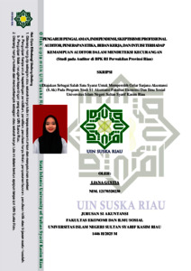 LIANA GUSTIA, - (2025) PENGARUH PENGALAMAN, INDEPENDENSI, SKEPTISISME PROFESIONAL AUDITOR, PENERAPAN ETIKA, BEBAN KERJA, DAN INTUISI TERHADAP KEMAMPUAN AUDITOR DALAM MENDETEKSI KECURANGAN (Studi pada Auditor di BPK RI Perwakilan Provinsi Riau). Skripsi thesis, UNIVERSITAS ISLAM NEGERI SULTAN SYARIF KASIM RIAU.