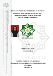 ABSTRAK Nurdiah Harahap, (2025): Pengaruh Penerapan Metode Ibrah Maw’izah terhadap Hasil Belajar Siswa pada Mata Pelajaran Akidah Akhlak Madrasah Aliyah Negeri 3 Pekanbaru Penelitian ini bertujuan untuk menguji pengaruh penerapa Metode Ibrah Maw’izah terhadap Hasil Belajar Siswa pada Mata Pelajaran Akidah Akhlak Madrasah Aliyah Negeri 3 Pekanbaru. Jenis penelitian ini adalah quasi experimental design dengan bentuk nonequivalent control group design. Populasi dalam penelitian ini berjumlah 219 siswa. Sampel penelitian berjumlah 70 siswa, dengan rincian 35 siswa dari kelompok eksperimen dan 35 siswa dari kelompok kontrol. Teknik pengumpulan data menggunakan observasi, tes, dan dokumentasi. Teknik analisis data menggunakan tes ―t‖ (independent- samples t test). Hasil penelitian yang diperoleh bahwa terdapat pengaruh Metode Ibrah Maw’izah terhadap Hasil Belajar Siswa pada Mata Pelajaran Akidah Akhlak Madrasah Aliyah Negeri 3 Pekanbaru, dibuktikan dengan nilai thitung 2.317 > ttabel 2,04 pada taraf signifikansi 5% dan nilai sig. (2-tailed) 0.02 < 0.05, dimana nilai rata-rata (mean) kelompok ekperimen sebesar 78,14 dan 76,14 pada kelompok kontrol. Kata Kunci: Metode Ibrah Maw’izah, Hasil Belajar Siswa