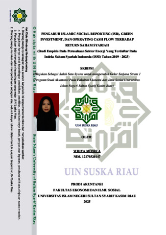 WIDYA MONICA, - (2025) PENGARUH ISLAMIC SOCIAL REPORTING (ISR), GREEN INVESTMENT, DAN OPERATING CASH FLOW TERHADAP RETURN SAHAM SYARIAH (Studi Empiris Pada Perusahaan Sektor Energi Yang Terdaftar Pada Indeks Saham Syariah Indonesia (ISSI) Tahun 2019 - 2023). Skripsi thesis, UIN SUSKA RIAU.