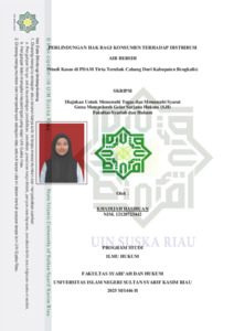 KHADIJAH HASIBUAN, - (2025) PERLINDUNGAN HAK BAGI KONSUMEN TERHADAP DISTRIBUSI AIR BERSIH (STUDI KASUS DI PDAM TIRTA TERUBUK CABANG DURI KABUPATEN BENGKALIS). Skripsi thesis, UNIVERSITAS ISLAM NEGERI SULTAN SYARIF KASIM RIAU.