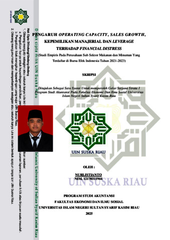 NURLISTIANTO, - (2025) PENGARUH OPERATING CAPACITY, SALES GROWTH, KEPEMILIKAN MANAJERIAL DAN LEVERAGE TERHADAP FINANCIAL DISTRESS (Studi Empiris Pada Perusahaan Sub Sektor Makanan dan Minuman Yang Terdaftar di Bursa Efek Indonesia Tahun 2021-2023). Skripsi thesis, UNIVERSITAS ISLAM NEGERI SULTAN SYARIF KASIM RIAU.
