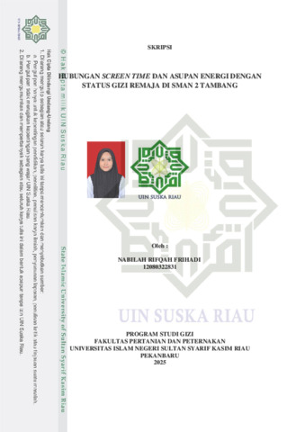 NABILAH RIFQAH FRIHADI, - (2025) HUBUNGAN SCREEN TIME DAN ASUPAN ENERGI DENGAN STATUS GIZI REMAJA DI SMAN 2 TAMBANG. Skripsi thesis, UNIVERSITAS ISLAM NEGERI SULTAN SYARIF KASIM RIAU.