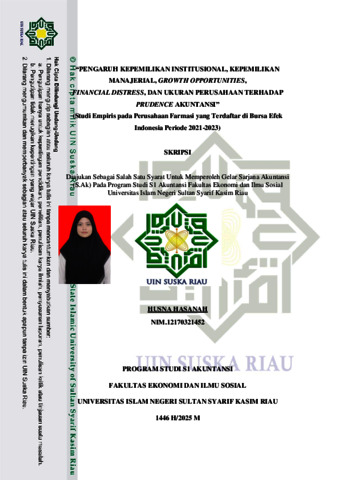 HUSNA HASANAH, - (2025) “PENGARUH KEPEMILIKAN INSTITUSIONAL, KEPEMILIKAN MANAJERIAL, GROWTH OPPORTUNITIES, FINANCIAL DISTRESS, DAN UKURAN PERUSAHAAN TERHADAP PRUDENCE AKUNTANSI” (Studi Empiris pada Perusahaan Farmasi yang Terdaftar di Bursa Efek Indonesia Periode 2021-2023). Skripsi thesis, UNIVERSITAS ISLAM NEGERI SULTAN SYARIF KASIM RIAU.