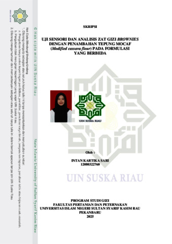 INTAN KARTIKA SARI, - (2025) UJI SENSORI DAN ANALISIS ZAT GIZI BROWNIES DENGAN PENAMBAHAN TEPUNG MOCAF (Modified cassava flour) PADA FORMULASI YANG BERBEDA. Skripsi thesis, UNIVERSITAS ISLAM NEGRI SULTAN SYARIF KASIM RIAU.