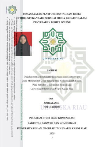 Apridayanti, - (2025) Pemanfaatan Platform Instagram Reels @tribunpekanbaru sebagai Media Kreatif dalam Penyebaran Berita Online. Skripsi thesis, Universitas Islam Negeri Sultan Syarif Kasim Riau.