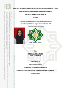 ABSTRAK Delia Kurnia Putri (2025) : Analisis Pengelolaan Corporate Social Responsibilty (CSR) Perusahaan Mitra Pada Dompet Dhuafa Riau Penelitian ini dilatar belakangi oleh bertambahnya jumlah perusahaan mitra sebesar 150%, namun jumlah dana CSR tidak mengalami peningkatan tetapi berkurang sebesar 1,42%, yang mana jika dana ini tidak dikelola dengan baik dapat menyebabkan tidak optimal manfaat dana CSR kepada masyarakat. Tujuan penelitian ini adalah menjelaskan proses pengelolaan dana CSR, menjelaskan upaya pengembangan program CSR untuk meningkatkan reputasi Dompet Dhuafa Riau, dan menjelaskan pengelolaan dan pengembangan CSR di Dompet Dhuafa Riau perspektif ekonomi syariah. Metode penelitian yang digunakan adalah dengan pendekatan kualitatif dengan jenis penelitian lapangan (field research). Sumber data yang digunakan adalah data primer dan sekunder dengan menggunakan teknik pengumpulan data dengan wawancara, dan dokumentasi. Kemudian dianalisis menggunakan model miles dan huberman. Hasil penelitian menunjukkan bahwa Dompet Dhuafa Riau dalam mengelola dana CSR dari perusahaan-perusahaan sudah mengaplikasikan tahapan fungsi manajemen dalam pengelolaan dana CSR, yaitu: Tahap perencanaan dimulai dengan adanya permintaan dari perusahaan mitra, penyusunan dokumen perencanaan, dan identifikasi potensi dan kebutuhan masyarakat. Tahap implementasi mengacu pada kesepakatan awal dengan perusahaan mitra. Tahap evaluasi dilakukan secara langsung dengan memberikan laporan progam yang sedang berjalan agar perusahaan mitra bisa memberikan masukan atau ada hal yang perlu diperbaiki. Tahap pelaporan dilakukan secara berskala baik lisan, tulisan, dan sistem termin pencairan. Upaya pengembangan program CSR berfokus pada membangun kemitraan yang kuat, menjaga keberlanjutan program, dan meningkatkan kualitas setiap program. Pengelolaan dan pengembangan dana CSR yang dilakukan oleh Dompet Dhuafa Riau sudah sesuai dengan prinsip kejujuran dan prinsip tanggung jawab yang merupakan bagian dari prinsip ekonomi syariah. Kata Kunci: Pengelolaan dana, Corporate Social Responsibility (CSR), Dompet Dhuafa Riau, Ekonomi Syariah.