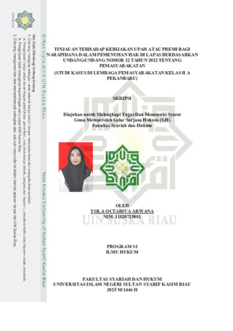 Yola Oktarifa Arwana, - (2025) TINJAUAN TERHADAP KEBIJAKAN UPAH ATAU PREMI BAGI NARAPIDANA DALAM PEMENUHAN HAK DI LAPAS BERDASARKAN UNDANG-UNDANG NOMOR 22 TAHUN 2022 TENTANG PEMASYARAKATAN (STUDI KASUS DI LEMBAGA PEMASYARAKATAN KELAS II A PEKANBARU). Skripsi thesis, Universitas Islam Negeri Sultan Syarif Kasim Riau.