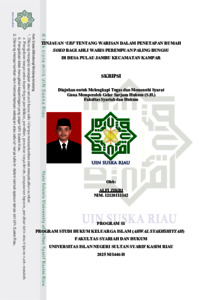 ALFI ZIKRI, - (2025) TINJAUAN ‘URF TENTANG WARISAN DALAM PENETAPAN RUMAH SOKO BAGI AHLI WARIS PEREMPUAN PALING BUNGSU DI DESA PULAU JAMBU KECAMATAN KAMPAR. Skripsi thesis, UNIVERSITAS ISLAM NEGRI SULTAN SYARIF KASIM RIAU.
