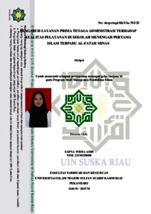 SAFNA WIDIA ASIH, - (2025) PENGARUH LAYANAN PRIMA TENAGA ADMINISTRASI TERHADAP KUALITAS PELAYANAN DI SEKOLAH MENENGAH PERTAMA ISLAM TERPADU AL-FATAH MINAS. Skripsi thesis, UNIVERSITAS ISLAM NEGERI SULTAN SYARIF KASIM RIAU.