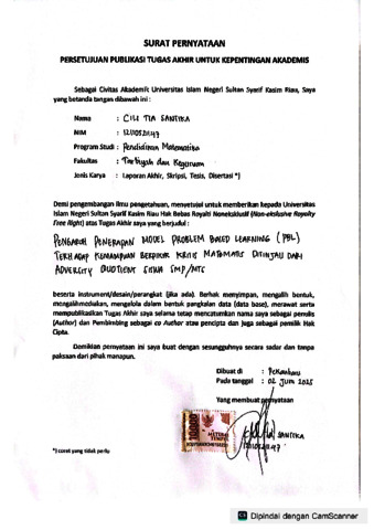 SURAT PERNYATAAN CILI TIA SANTIKA - CILI TIA SANTIKA PENDIDIKAN MATEMATIKA.pdf - Published Version Download (710kB) | Preview |