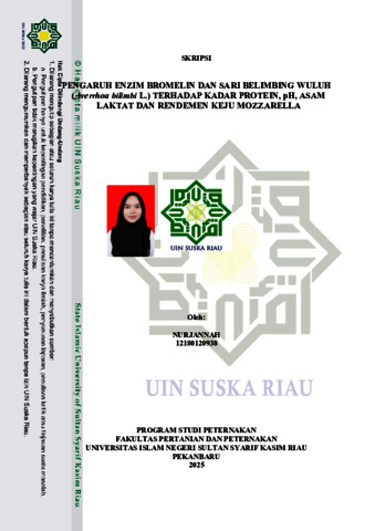 NURJANNAH, - (2025) PENGARUH ENZIM BROMELIN DAN SARI BELIMBING WULUH (Averrhoa bilimbi L.) TERHADAP KADAR PROTEIN, pH, ASAM LAKTAT DAN RENDEMEN KEJU MOZZARELLA. Skripsi thesis, UNIVERSITAS ISLAM NEGERI SULTAN SYARIF KASIM RIAU.