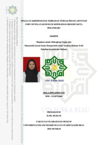 DELA PIPI AFRIYANI, - (2025) TINJAUAN KRIMINOLOGI TERHADAP TINDAK PIDANA REVENGE PORN DI WILAYAH HUKUM KEPOLISIAN RESORT KOTA PEKANBARU. Skripsi thesis, UNIVERSITAS ISLAM NEGERI SULTAN SYARIF KASIM RIAU.