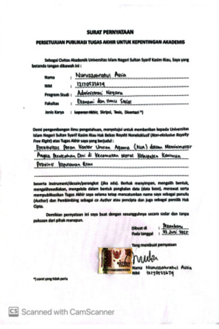 SURAT PERNYATAAN PERSETUJUAN PUBLIKASI - NURUZZAHRATUL AULIA ADMINISTRASI NEGARA.pdf - Published Version Download (840kB) | Preview |
