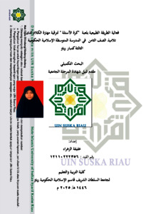 "ABSTRAK Afifah Azzahra, (2025) : EFEKTIVITAS METODE ALAMIAH DENGAN PERMAINAN BOLA BERTANYA UNTUK MENINGKATKAN MAHARAH KALAM PADA SISWA KELAS VIII MTS NEGERI 3 KAMPAR Penelitian ini bertujuan untuk mengetahui efektifitas metode alamiah dengan permainan bola bertanya untuk meningkatkan maharah kalam pada siswa kelas VIII MTs Negeri 3 Kampar. Jenis penelitian ini adalah penelitian kuantitatif eksperimen dengan design quasi eksperimental dengan bentuk nonequivalent control group design. Adapun populasi penelitian ini adalah seluruh siswa kelas VIII MTs Negeri 3 Kampar pada tahun ajaran 2024/2025 yang berjumlah 62 siswa, dan sampelnya terdiri dari 41 siswa dengan kelas VIII A sebagai kelas eksperimen yang berjumlah 20 siswa dan kelas VIII B sebagai kelas kontrol yang berjumlah 21 siswa. Teknik pengumpulan data meliputi observasi, tes dan dokumentasi. Teknik analisis data meliputi uji normalitas, uji homogenitas dan uji T. Berdasarkan data yang diperoleh dapat disimpulkan bahwa pertama, metode alamiah dengan permainan bola bertanya efektif untuk meningkatkan maharah kalam pada siswa kelas VIII MTs Negeri 3 Kampar. Hal ini terbukti dengan nilai t_hitung 10,841 > t_tabel 2,093 dengan taraf signifikan 0,000 < 0,05. Hal ini berarti bahwa H_a diterima dan H_O ditolak. Kata kunci : Efektivitas, Metode Alamiah, Permainan Bola Bertanya, Maharah Kalam "