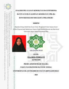 EGA IRMA FEBRIANTI, - (2025) ANALISIS PELAYANAN KESEHATAN BAGI PENERIMA BANTUAN IURAN JAMINAN KESEHATAN (PBI-JK) DI PUSKESMAS RUMBAI KOTA PEKANBARU. Skripsi thesis, UNIVERSITAS ISLAM NEGERI SULTAN SYARIF KASIM RIAU.