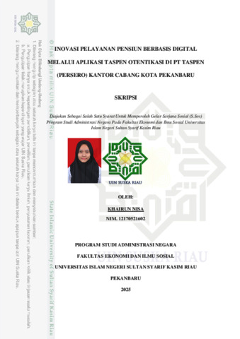 KHAIRUN NISA, - (2025) INOVASI PELAYANAN PENSIUN BERBASIS DIGITAL MELALUI APLIKASI TASPEN OTENTIKASI DI PT TASPEN (PERSERO) KANTOR CABANG KOTA PEKANBARU. Skripsi thesis, Universitas Islam Negeri Sultan Syarif Kasim Riau.