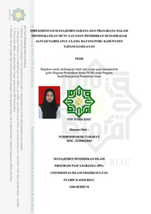 NURHOFIPAH HUTABARAT, - (2025) IMPLEMENTASI MANAJEMEN SARANA DAN PRASARANA DALAM MENINGKATKAN MUTU LAYANAN PENDIDIKAN DI MADRASAH ALIYAH NAHDLATUL ULAMA BATANGTORU KABUPATEN TAPANULI SELATAN. Thesis thesis, UNIVERSITAS ISLAM NEGERI SULTAN SYARIF KASIM RIAU.