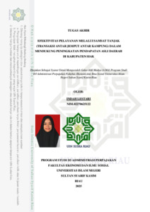 INDAH LESTARI, - (2025) EFEKTIVITAS PELAYANAN MELALUI SAMSAT TANJAK (TRANSAKSI ANTAR JEMPUT ANTAR KAMPUNG) DALAM MENDUKUNG PENINGKATAN PENDAPATAN ASLI DAERAH DI KABUPATEN SIAK. Laporan thesis, Universitas Islam Negeri Sultan Syarif Kasim Riau.