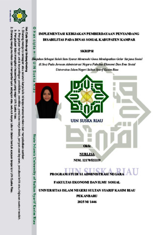 NURLISA, - (2025) IMPLEMENTASI KEBIJAKAN PEMBERDAYAAN PENYANDANG DISABILITAS PADA DINAS SOSIAL KABUPATEN KAMPAR. Skripsi thesis, UIN SUSKA.