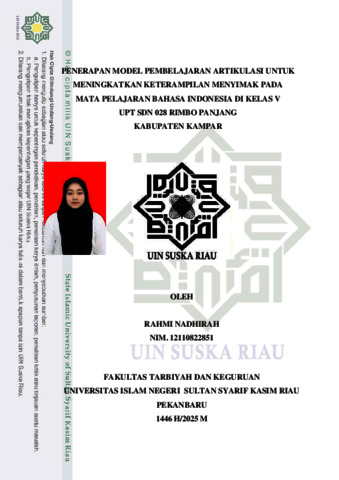 PENERAPAN MODEL PEMBELAJARAN ARTIKULASI UNTUK MENINGKATKAN KETERAMPILAN MENYIMAK PADA MATA PELAJARAN BAHASA INDONESIA DI KELAS V UPT SDN 028 RIMBO PANJANG KABUPATEN KAMPAR