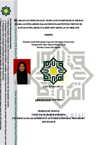 LISTIANA WATI, - (2025) PELAKSANAAN PENGAWASAN OLEH SATUAN KEPOLISIAN AIR DAN UDARA SATPOLAIRUD DALAM MENCEGAH PENYELUNDUPAN DI KAWASAN PELABUHAN KABUPATEN KEPULAUAN MERANTI. Skripsi thesis, UNIVERSITAS ISLAM NEGERI SULTAN SYARIF KASIM RIAU.