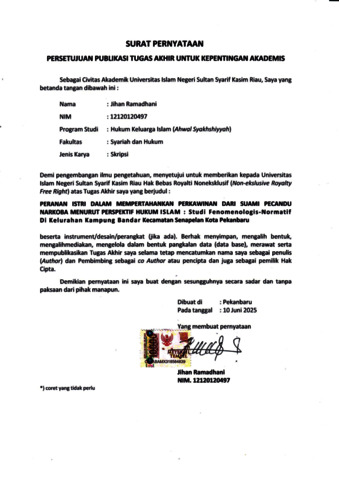 SURAT PERNYATAAN - JIHAN RAMADHANI Hukum Keluarga (Akhwal Syaksiyah) S1.pdf - Published Version Download (343kB) | Preview |