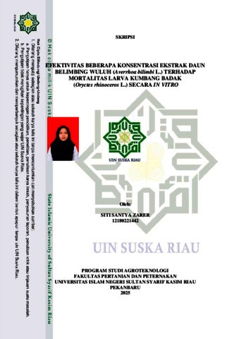 SITI SANTYA ZARER, - (2025) EFEKTIVITAS BEBERAPA KONSENTRASI EKSTRAK DAUN BELIMBING WULUH (Averrhoa bilimbi L.) TERHADAP MORTALITAS LARVA KUMBANG BADAK (Oryctes rhinoceros L.) SECARA IN VITRO. Skripsi thesis, UNIVERSITAS ISLAM NEGERI SULTAN SYARIF KASIM RIAU.