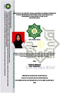 MARIATI SIREGAR, - (2025) PEMANFAATAN TIKTOK @latah_tuah SEBAGAI MEDIA PUBLIKASI UNTUK MENINGKATKAN CITRA PADA UNIT KEGIATAN MAHASISWA (UKM) SENI LATAH TUAH UIN SUSKA RIAU. Skripsi thesis, UNIVERSITAS ISLAM NEGERI SULTAN SYARIF KASIM RIAU.