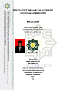 FEBBY ADRIANSYAH, - (2025) TEXT-TO-SPEECH BAHASA BATAK MANDAILING MENGGUNAKAN METODE VITS. Skripsi thesis, UIN SUSKA.