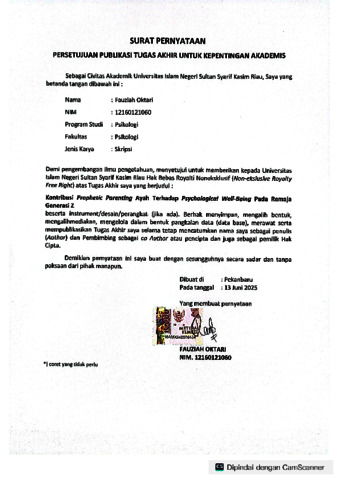 surat pernyataan persetujuan publikasi - FAUZIAH OKTARI FPSI S1.pdf - Published Version Download (445kB) | Preview |