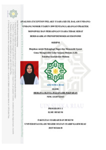 HERLINA OLIVIA JULIANA BR PAKPAHAN, - (2025) ANALISIS EXCEPTION PELAKU USAHA KECIL DALAM UNDANG-UNDANG NOMOR 5 TAHUN 1999 TENTANG LARANGAN PRAKTEK MONOPOLI DAN PERSAINGAN USAHA TIDAK SEHAT BERDASARKAN PRINSIP DEMOKRASI EKONOMI. Skripsi thesis, UNIVERSITAS ISLAM NEGERI SULTAN SYARIF KASIM RIAU.