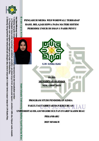MUNADIYAH RAHMAN, - (2025) PENGARUH MEDIA WEB WORDWALL TERHADAP HASIL BELAJAR SISWA PADA MATERI SISTEM PERIODIK UNSUR DI SMAN 1 PASIR PENYU. Skripsi thesis, UNIVERSITAS ISLAM NEGERI SULTAN SYARIF KASIM RIAU.