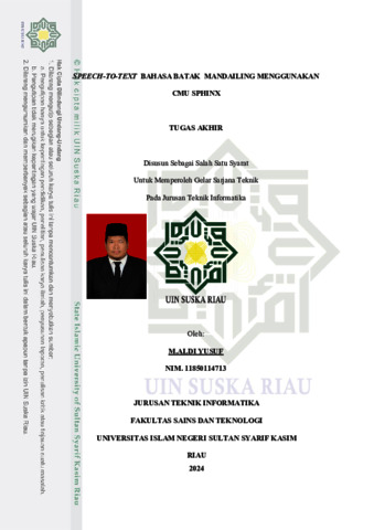 M. ALDI YUSUF, - (2025) SPEECH-TO-TEXT BAHASA BATAK MANDAILING MENGGUNAKAN CMU SPHINX. Skripsi thesis, UNIVERSITAS ISLAM NEGERI SULTAN SYARIF KASIM RIAU.