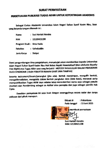 SUCI HARTATI HENDRA, - (2025) METODE RASULULLAH DALAM PEMULIHAN DUCK SYNDROME ( OLEH PSIKIATER RUMAH SAKIT JIWA TAMPAN). Skripsi thesis, UNIVERSITAS ISLAM NEGERI SULTAN SYARIF KASIM RIAU.