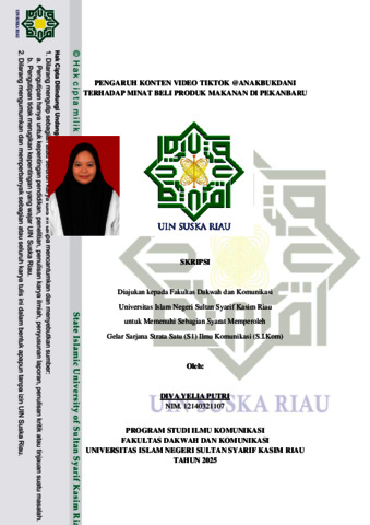 DIVA YELIA PUTRI, - (2025) PENGARUH KONTEN VIDEO TIKTOK @ANAKBUKDANI TERHADAP MINAT BELI PRODUK MAKANAN DI PEKANBARU. Skripsi thesis, Universitas Islam Negeri Sultan Syarif Kasim Riau.