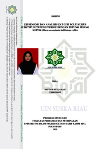 MIFTAH HULJANAH, - (2025) UJI SENSORI DAN ANALISIS ZAT GIZI BOLU KUKUS SUBSTITUSI TEPUNG TERIGU DENGAN TEPUNG PISANG KEPOK (MUSA ACUMINATA BALBISIANA COLLA). Skripsi thesis, UNIVERSITAS ISLAM NEGERI SULTAN SYARIF KASIM RIAU.