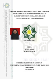 NURUL ADILA, - (2025) PENGARUH PENGGUNAAN MEDIA POP-UP BOOK TERHADAP MOTIVASI BELAJAR SISWA PADA PEMBELAJARAN ILMU PENGETAHUAN SOSIAL DI MADRASAH TSANAWIYAH AL MUTTAQIN PEKANBARU. Skripsi thesis, UNIVERSITAS ISLAM NEGERI SULTAN SYARIF KASIM RIAU.