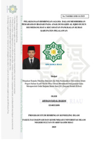 AHMAD FAISAL HAKIM, - (2025) PELAKSANAAN BIMBINGAN AGAMA DALAM MEMBERIKAN PEMAHAMAN IBADAH PADA ANAK DI MASJID AL IQRO DUSUN SEI MEDANG RAYA KECAMATAN PANGKALAN KURAS KABUPATEN PELALAWAN. Skripsi thesis, Universitas Islam Negeri Sultan Syarif Kasim Riau.