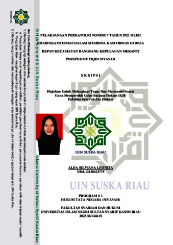ALDA SILVIANA LEONITA, - (2025) PELAKSANAAN PERKAPOLRI NOMOR 7 TAHUN 2021 OLEH BHABINKAMTIBMAS DALAM MEMBINA KAMTIBMAS DI DESA REPAN KECAMATAN RANGSANG KEPULAUAN MERANTI PERSPEKTIF FIQIH SIYASAH. Skripsi thesis, UNIVERSITAS ISLAM NEGERI SULTAN SYARIF KASIM RIAU.