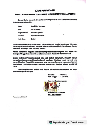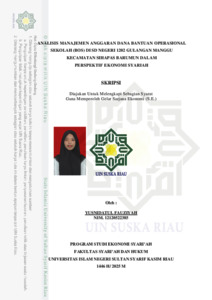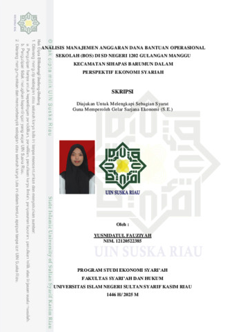 ABSTRAK Yusnidatul Fauziyah, (12120522385): Analisis Manajemen Anggaran Dana Bantuan Operasional Sekolah (BOS) di SD Negeri 1202 Gulangan Manggu Kecamatan Sihapas Barumun dalam Perspektif Ekonomi Syariah SD Negeri 1202 Gulangan Manggu termasuk salah satu sekolah penerima Dana Bantuan Operasional Sekolah (BOS) dan telah melaksanakan program tersebut. Namun, dalam manajemennya masih terdapat kendala seperti kurangnya transparansi, minimnya partisipasi stakeholder. Dalam sisi ekonomi syariah, pengelolaan dana publik harus dilakukan secara adil, amanah, dan bertanggung jawab. Hal ini mendorong perlunya kajian yang mengaitkan prinsip-prinsip ekonomi syariah dalam praktik pengelolaan dana BOS. Penelitian ini memiliki tujuan untuk mengetahui manajemen anggaran dana BOS di SD Negeri 1202 Gulangan Manggu dan kesesuainnya manajemen anggaran dananya dengan prinsip-prinsip ekonomi syariah. Metode yang digunakan dalam penelitian ini adalah metode kualitatif dengan pendekatan deskriptif. Penelitian ini adalah penelitian lapangan (field research). Dilakukan di SD Negeri 1202 Gulangan Manggu Kecamatan Sihapas Barumun. Subjek penelitian ini adalah pihak-pihak yang terlibat dalam pengelolaan dana BOS yaitu kepala sekolah, dan bendahara. Instrumen penelitian menggunakan pedoman wawancara, dan metode pengumpulan data melalui observasi, wawancara, dan dokumentasi. Analisa data menggunakan teknik reduksi data, penyajian data, lalu penarikan kesimpulan, sedangkan untuk penulisan menggunakan teknik deskriptif yang bertujuan menggambarkan suatu objek atau kejadian secara rinci dan detail. Berdasarkan hasil penelitian, pengelolaan Dana BOS di SD Negeri 1202 Gulangan Manggu, Kecamatan Sihapas Barumun, dalam menerapkan prinsip akuntabilitas, transparansi, efektivitas, dan efisiensi sudah berjalan cukup baik. Hal ini tercermin dari adanya partisipasi seluruh pihak terkait, mulai dari Dinas Pendidikan, tim manajemen sekolah, guru, hingga komite sekolah, dalam proses perencanaan, pelaksanaan, dan evaluasi anggaran. Namun, dalam perspektif ekonomi syariah, masih terdapat beberapa aspek yang perlu ditingkatkan, seperti transparansi kepada seluruh pemangku kepentingan dan partisipasi masyarakat dalam pengawasan. Secara umum, pengelolaan dana BOS di sekolah ini telah mencerminkan prinsip keadilan, amanah, dan maslahah, yang sesuai dengan niai-nilai ekonomi syariah. Kata kunci: Manajemen, Dana Bantuan Operasional Sekolah (BOS), Transparansi, Akuntabilitas, Efektivitas, Efisiensi.