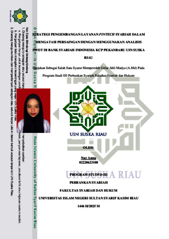 NUR ASMA, - (2025) STRATEGI PENGEMBANGAN LAYANAN TRANSFER ELEKTRONIK DALAM MENGATASI PERSAINGAN DENGAN MENGGUNAKAN ANALISIS SWOT DI BANK SYARIAH INDONESIA KCP PEKANBARU UIN SUSKA RIAU. Laporan thesis, UNIVERSITAS ISLAM NEGERI SULTAN SYARIF KASIM RIAU.