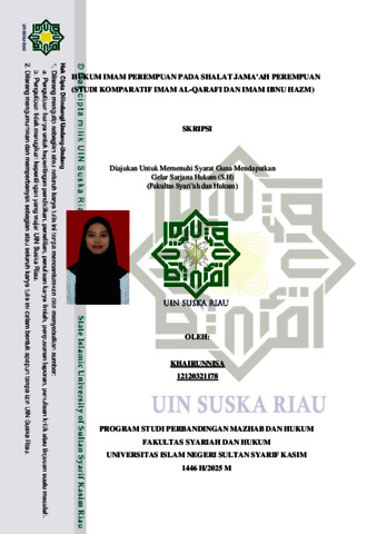 KHAIRUNNISA (2025) HUKUM IMAMPEREMPUAN PADA SHALAT JAMA’AH PEREMPUAN (STUDI KOMPARATIF IMAM AL-QARAFI DAN IMAM IBNU HAZM). Skripsi thesis, Universitas Islam Negeri Sultan Syarif Kasim Riau.
