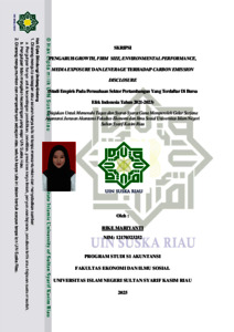 RIKE MARIYANTI, - (2025) PENGARUH GROWTH, FIRM SIZE, ENVIRONMENTAL PERFORMANCE, MEDIA EXPOSURE DAN LEVERAGE TERHADAP CARBON EMISSION DISCLOSURE (STUDI EMPIRIS PADA PERUSAHAAN SEKTOR PERTAMBANGAN YANG TERDAFTAR DI BURSA EFEK INDONESIA TAHUN 2021-2021). Skripsi thesis, UNIVERSITAS ISLAM NEGERI SULTAN SYARIF KASIM RIAU.