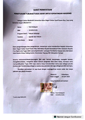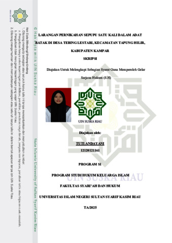 TUTI ANDAYANI, - (2025) LARANGAN PERNIKAHAN SEPUPU SATU KALI DALAM ADAT BATAK DI DESA TEBING LESTARI, KECAMATAN TAPUNG HILIR, KABUPATEN KAMPAR. Skripsi thesis, UNIVERSITAS ISLAM NEGERI SULTAN SYARIF KASIM RIAU.